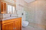 Second floor: 2 air conditioned bedrooms including one master bedroom, double bed, with private bathrooms, and small outdoor terrace.