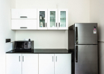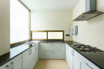 Dining, Kitchen – Up to 6 guests can sit together in the dining table, which is placed next to the living room sofa. This is one of the sunniest areas of the house as the table has a glass sliding window on one side and a glass door on the other that leads to a balcony. The kitchen has everything you need to cook a meal. Pots, pans, tableware, and glassware are also there for your convenience. You just need to get the groceries and cook. Alternatively, you can hire a chef or order food from outside.
