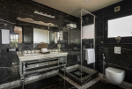 Bathrooms – The house has a total of five bathrooms, all with showers, the finest marble work, and designer washbasins. Both hand towels and bath towels and also toiletries are provided.