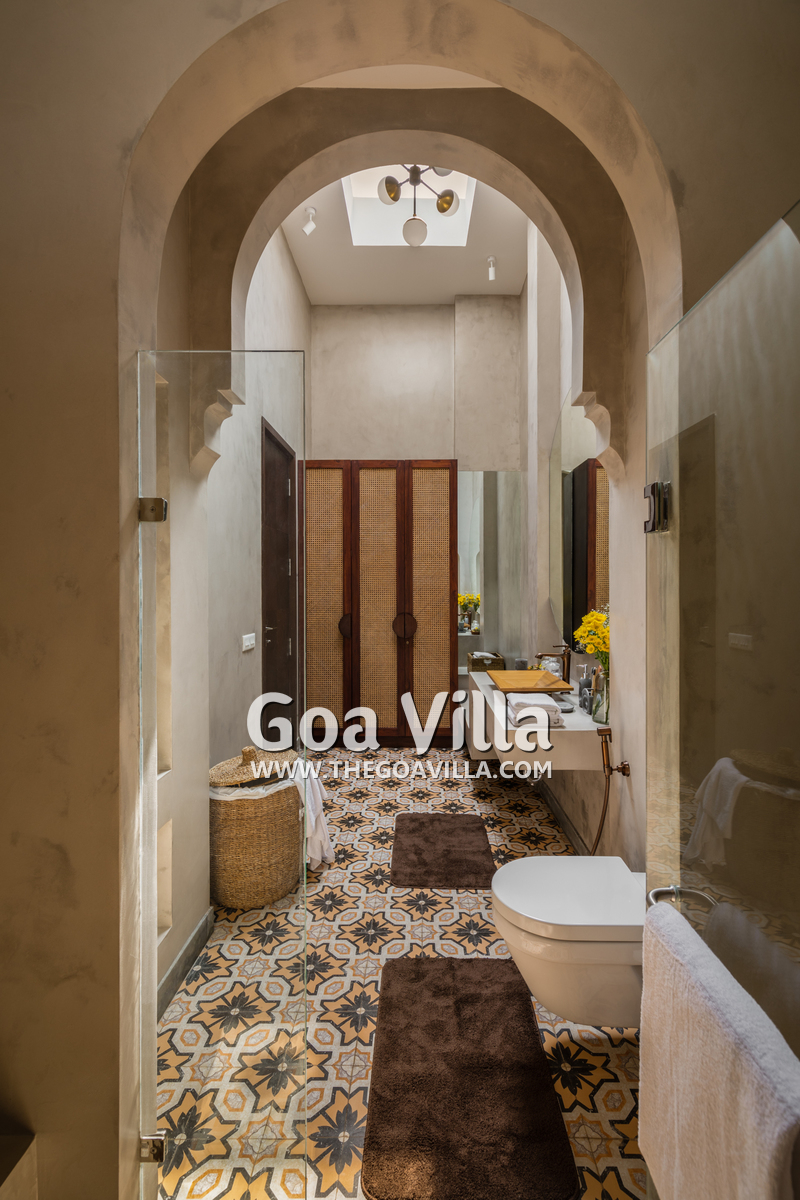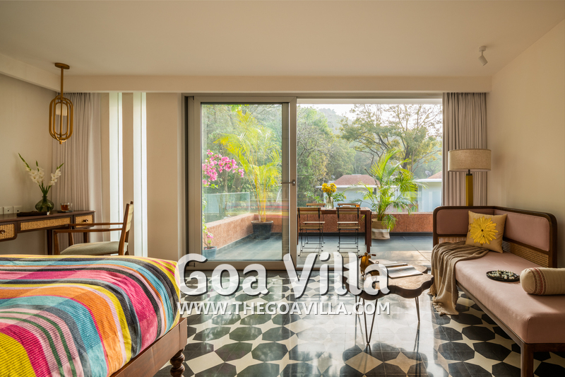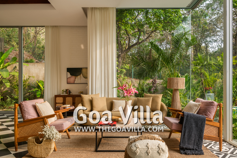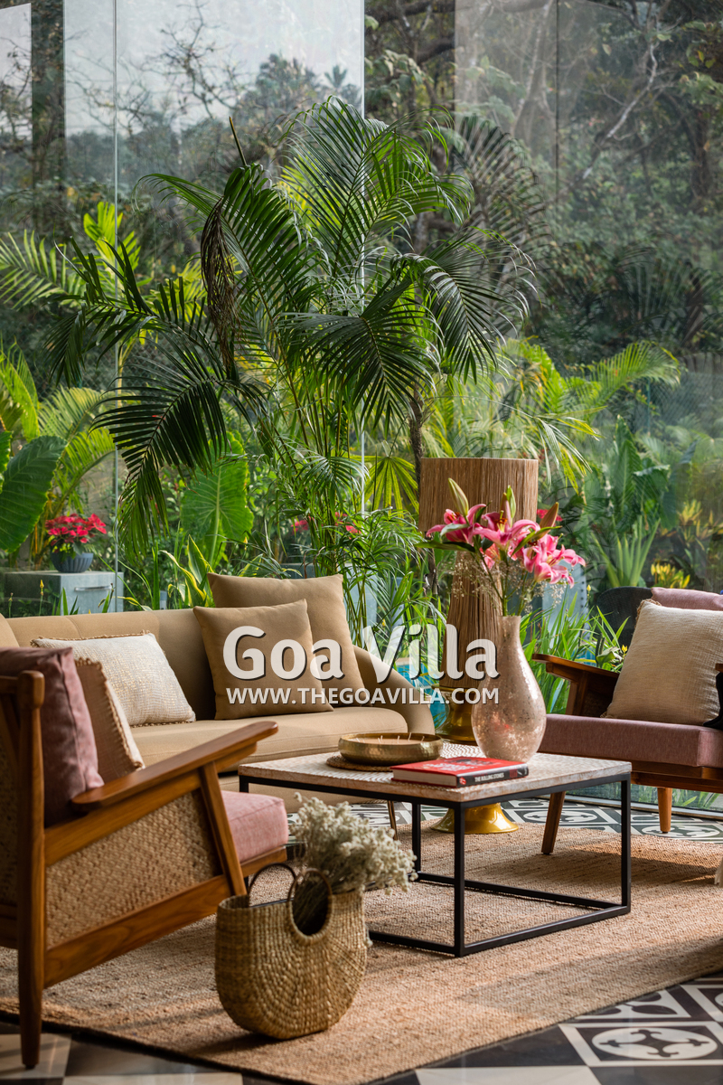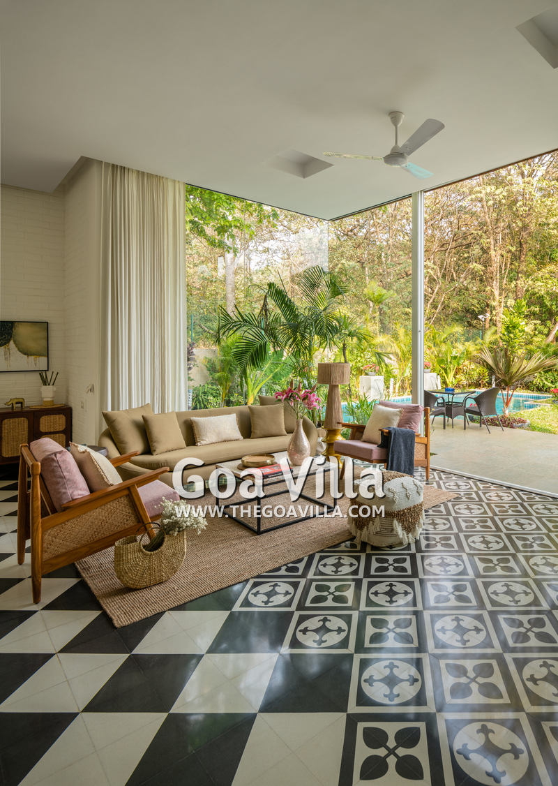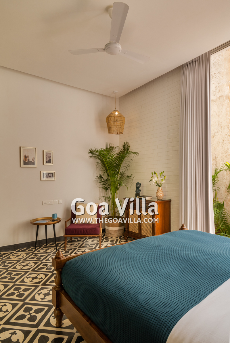 This luxury villa for rent is located next to a forested hill, which is called the Assagao Rainforest. It is beautiful and a popular hiking area in the neighborhood. Several beaches – Vagator, Anjuna, Morjim, and Ozran are an easy drive from this house. Even Baga Beach is nearby.