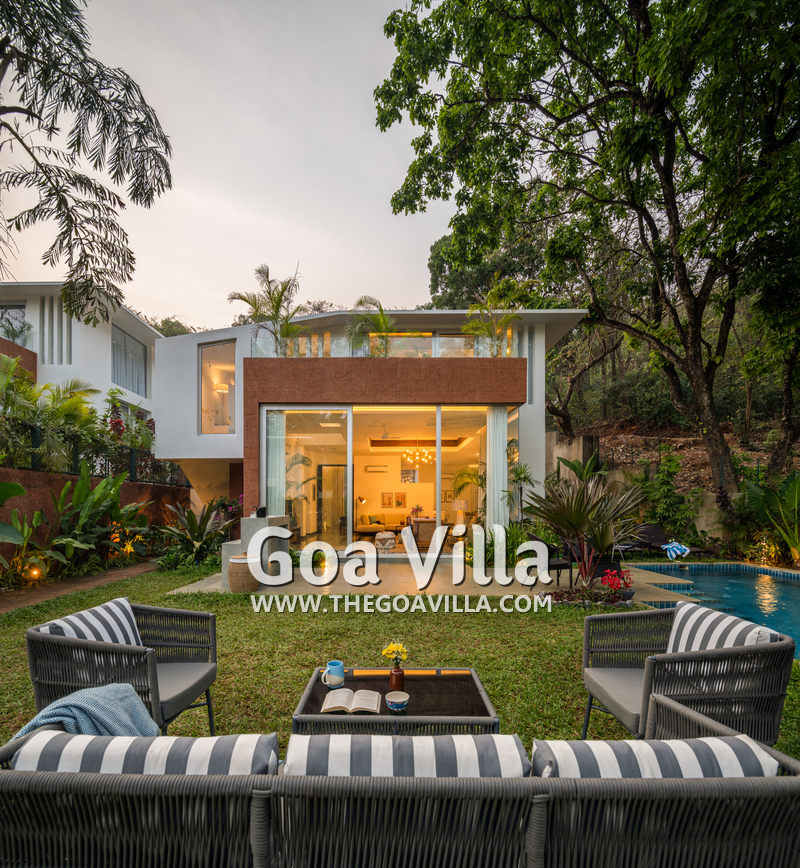 Serene Aurah is a 3-bedroom luxury North Goa home in a gated community with a caretaker, power backup, and complimentary breakfast.