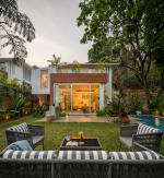 Serene Aurah is a 3-bedroom luxury holiday villa at Assagao in North Goa. Located at the side of a forested hill, this beautiful villa for rent is in a gated community where you will have complete privacy and security. Each house in the community is a self-sufficient unit and there is ample space between them. It’s a stunning location for a quiet and relaxing holiday. The house itself is packed with plenty of resort-quality modern amenities. All the rooms are air-conditioned. The bedrooms are ensuite. There is a well-equipped kitchen and a large living room. There is a beautiful lawn too with a private swimming pool.