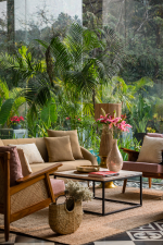 Bedrooms – The three bedrooms are spread over two floors of the house. They are all huge in space, much larger than most hotel or resort bedrooms. All three have large king beds with soft linen and extra pillows for a restful night. The bedrooms also have wardrobes, bedside tables with reading lamps, sofas, armchairs, and study tables. The master suite on the upper floor opens to a wide balcony where you will find a lounging area and an outdoor dining table. The balcony offers fabulous nature views.