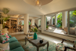 Dining, Kitchen – The formal dining room is located next to the pool. It has an elegant wooden table with 8 chairs. Villa Bayview 1 has a beautiful terrace with a second dining area and an outdoor bar. You will also find a shaded lounging area on the terrace. The modern kitchen is fully equipped. It has many appliances, pots, pans, and utensils.