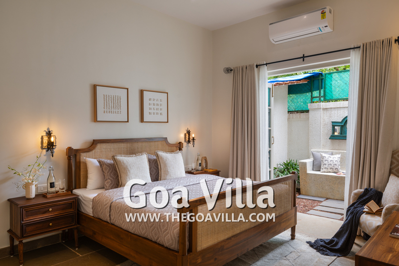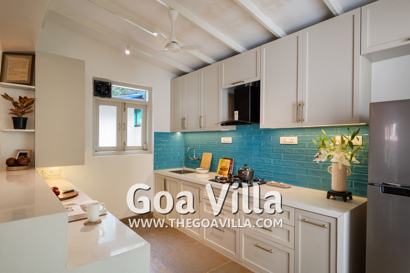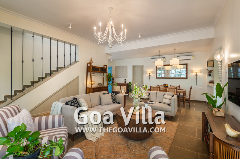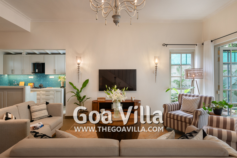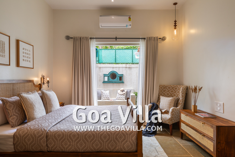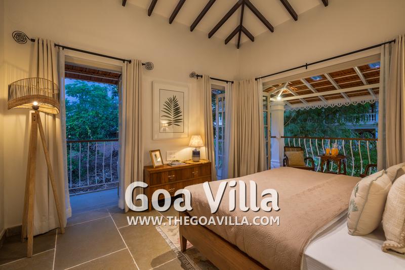 This standalone villa for rent is located at Vagator in North Goa close to the beach, Chapora Fort, and the Chapora River. Morjim Beach is just across the river. Nearby, you will find many popular restaurants and bars like Thalassa, Kiki – By The Sea, and Darlings Bar.