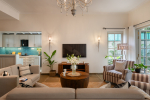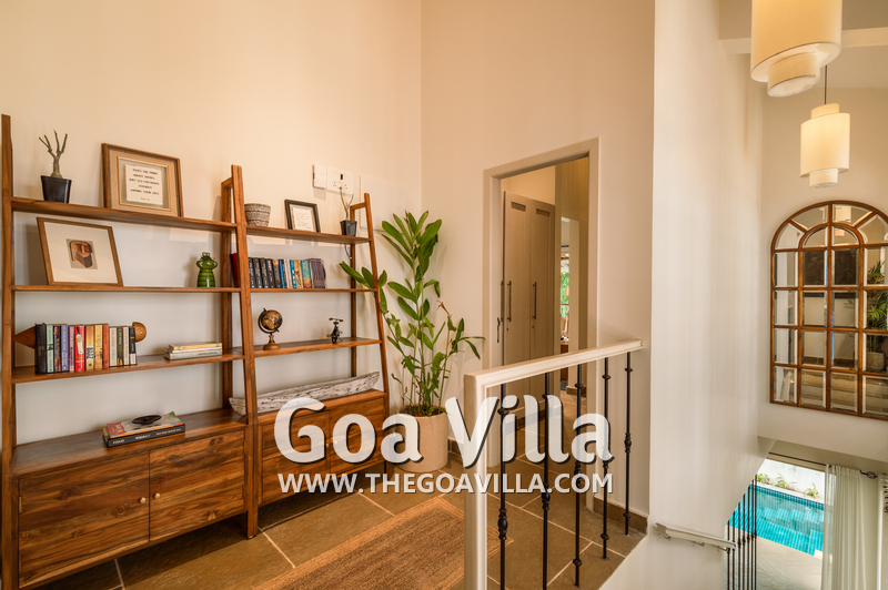 Enjoy a luxury holiday in a North Goa villa for rent with complete privacy. Villa Bodh is just a few steps from the famous Chapora Fort and Vagator Beach, which is one of the most popular coastal areas of Goa. The beach is just a 2-minute drive from this property. The house has 3 bedrooms for 6 guests, a private swimming pool, a well-equipped kitchen, living and dining areas, balconies offering green nature views, and a small library. The interior has a sleek and elegant décor with splashes of color add variety. All the rooms are air-conditioned. The exterior has a small garden.