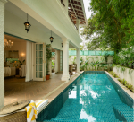 Swimming Pool – There is a gorgeous private pool just outside the house, which will be exclusively for you and your group when you stay here. Steps lead down gently into the refreshing water. There is even a shallow end for the kids. The neighboring trees lean over the water providing shade. A shaded verandah runs along the pool. It has a small dining area. On the other side of the pool, you will find a gazebo with an outdoor lounging space.
