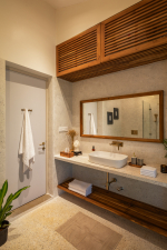 Bathrooms – The ensuite bathrooms have his/her sinks with modern faucets. You will find bathtubs or shower cubicles with rainwater showers. Towels and toiletries are provided.