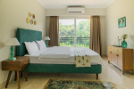 Bedrooms – All the 4 bedrooms in the house are lavishly appointed. They are spread over two floors and are airy and spacious. Bedroom #1 has a queen bed. Bedroom #2 has an antique four-poster. Bedrooms #3 and #4 have modern king beds. They are both on the upper floor and open to balconies that offer lovely green views. They are glass doors, so you will get these fabulous views even from the inside.