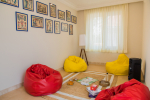 Living Room – The interior of this rental villa has a contemporary design. Its modern comforts make the home a haven for relaxation and rejuvenation. The living room has a huge L-shaped sofa and many armchairs, so the entire family can easily sit here. You can watch a movie on the large-screen television. Paintings decorate the walls. Soft color tones provide a soothing effect, which will help you relax. A ceiling-to-floor glass door opens to a balcony. Villa Fire Fly also has a hobby room with many bean bags, a sound system, and games.