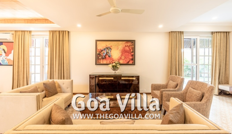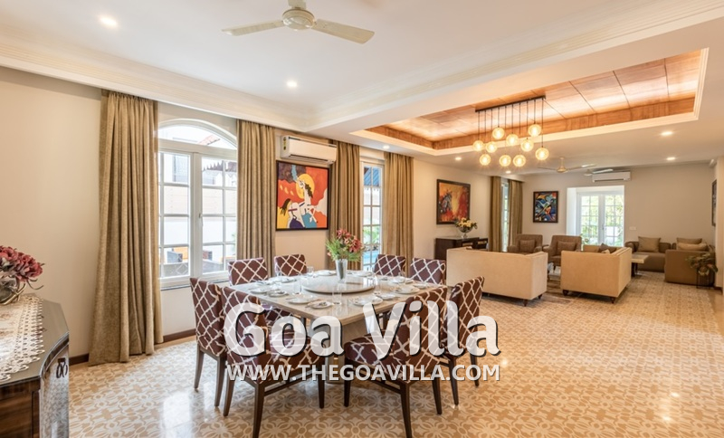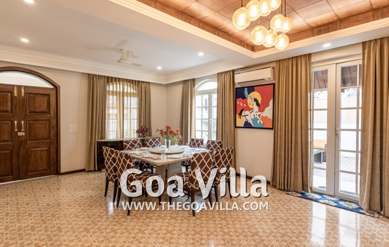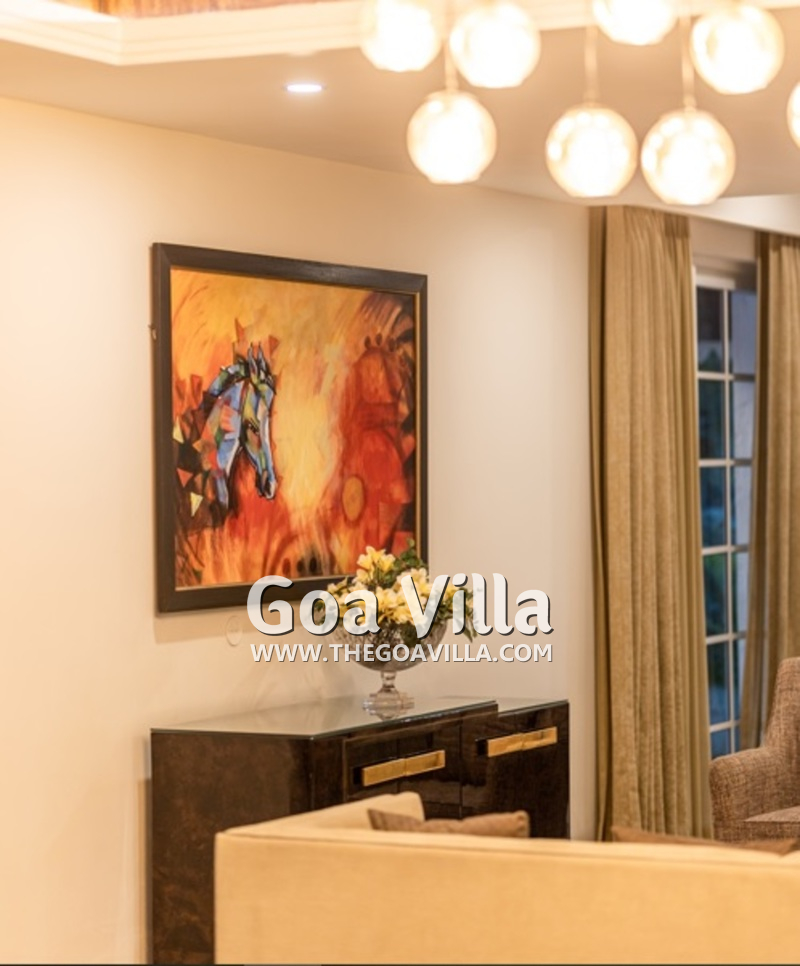 The villa is part of a luxury private gated community with security. It is in Saligao, which is a rural area away from the busy beaches. This is a very quiet and peaceful area with many tall trees, traditional homes, and wide-open fields. Saligao gets its name from the Sal trees. However, now, you will mostly find fruit trees here. The closest beach is Calangute, which you can reach in only 10-15 minutes. Baga and Candolim are also close.