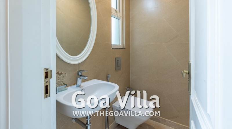 Swimming Pool – Each villa in this community, including Harmony 9 has its own private pool. You can swim anytime you want, even in the evening as the outdoor area is illuminated. A swim in the evening after returning from a long day of seeing some of Goa’s attractions will be very relaxing. The pool has a lawn and garden at one side and a lounging space on the pool deck on the other side. It has rattan chairs and a coffee table.