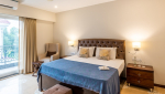 Bedrooms – The house has 4 bedrooms, all with large king beds. Guests with mobility issues, those who don’t want to climb the stairs, and those who want to stay close to the common areas can stay in the ground-floor bedroom. Upstairs, there are three more, arranged around a TV lounge. All bedrooms have satellite televisions, wardrobes, large windows, armchairs, and soft color tones, which provide a soothing effect. Each upper-floor bedroom open to a common balcony that offer countryside views. The master suite, on the top floor, additionally has a chest of drawers and a study table.