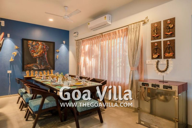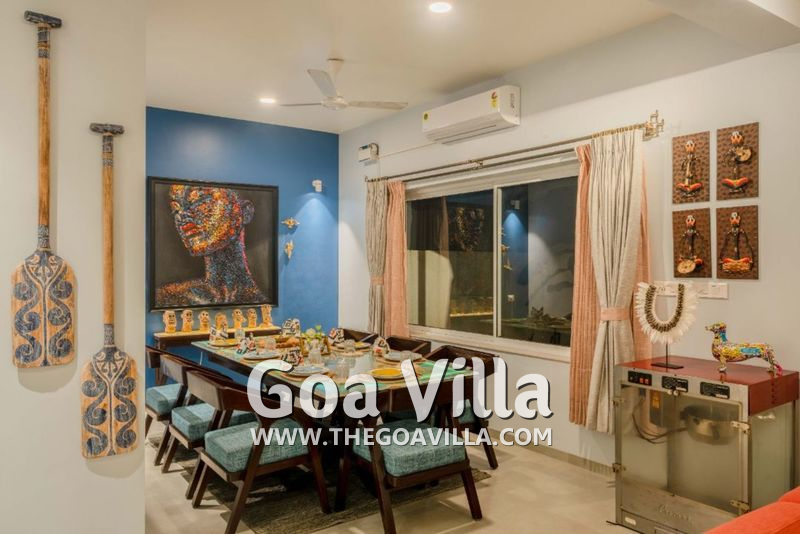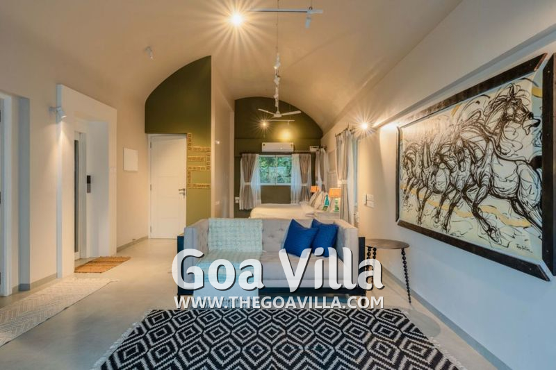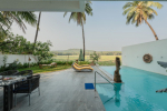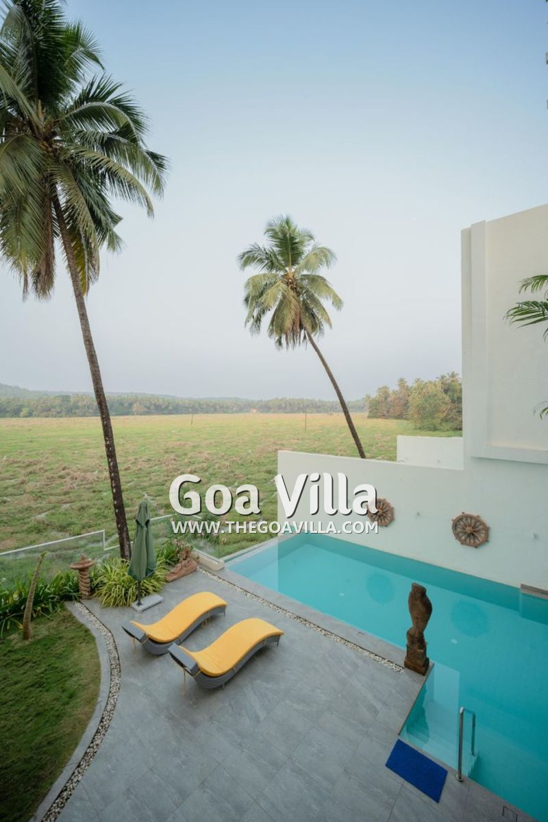 Stay in an authentic Goan village that is pristine and beautiful and yet close to some of the best North Goa beaches. Serene La Vie is a gorgeous 4-bedroom luxury villa for rent at the heart of this village. Spread over two floors, it is a large house that gives plenty of space to the guests to spread out and unwind. The villa has a private swimming pool facing a river. The upper floor balconies also offer fabulous views. Inside, you will find every modern amenity you want for a luxurious holiday. There are large dining and lounging areas, a well-equipped kitchen, and bathrooms with towels and toiletries. All the rooms are air-conditioned for your comfort.