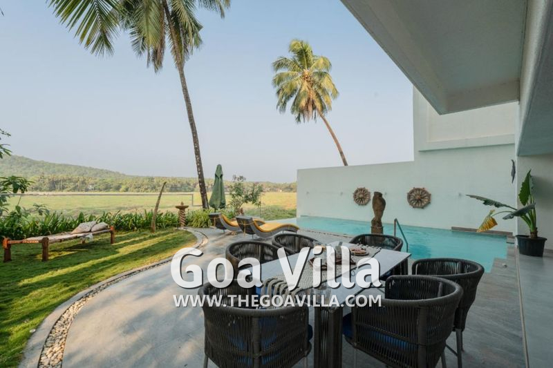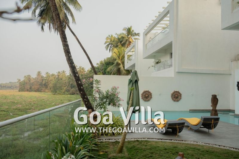 Serene La Vie is located in the Siolim neighborhood of North Goa. Siolim is often referred to as the land of rivers. There is the Anjuna River. The Chapora River flows nearby. And next to this luxury villa for rent, you will find the Haran River. La Vie has a beautiful riverside location. It is a very quiet and serene place, perfect for a quiet and relaxing riverside holiday.