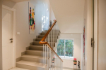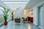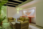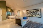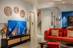 Living Room – The entire ground floor features a huge lounging area. The sofa is in vibrant colors, providing a nice contrast to the otherwise soft color tones of the room. Photos and paintings add a splash of color. You will also find several objects of art and even an interesting cap museum. There is a smaller corner for young children. The adults can spend their evenings in front of the huge television. You will also find smaller lounging areas on the balconies with armchairs and coffee tables.