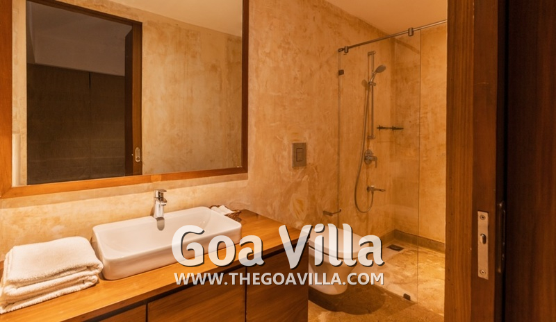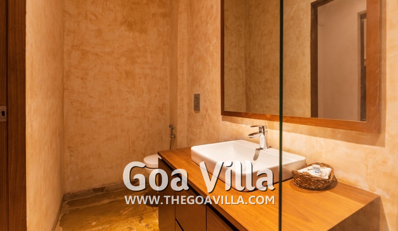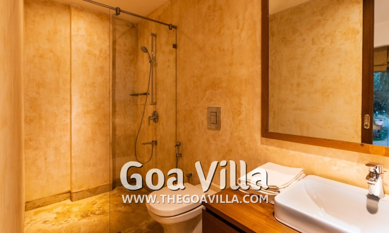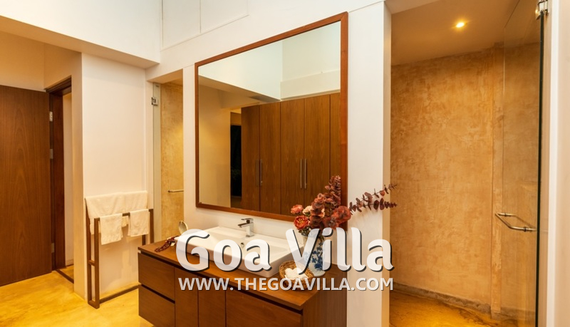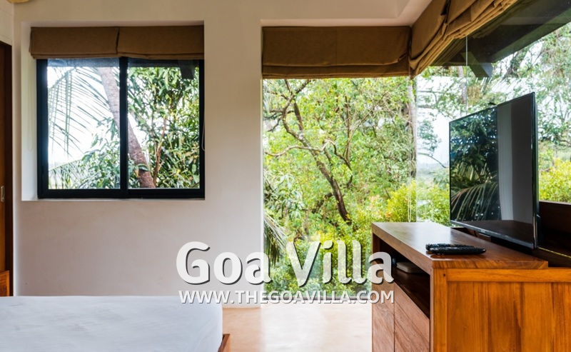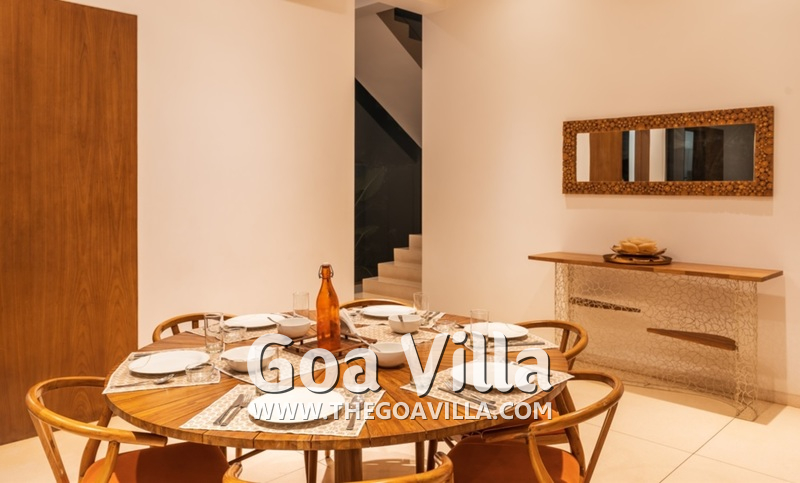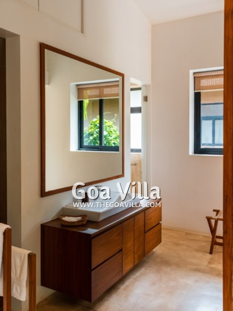 Swimming Pool – Outside, this luxury villa in Anjuna has a manicured lawn where you can lie back and relax. You will also see many tall trees. Several loungers are also placed on the lawn where you can relax before and after a session on the pool. At the center of the lawn, you will find a large swimming pool, which will be exclusively for your group. The small Baga River flows quietly just outside.