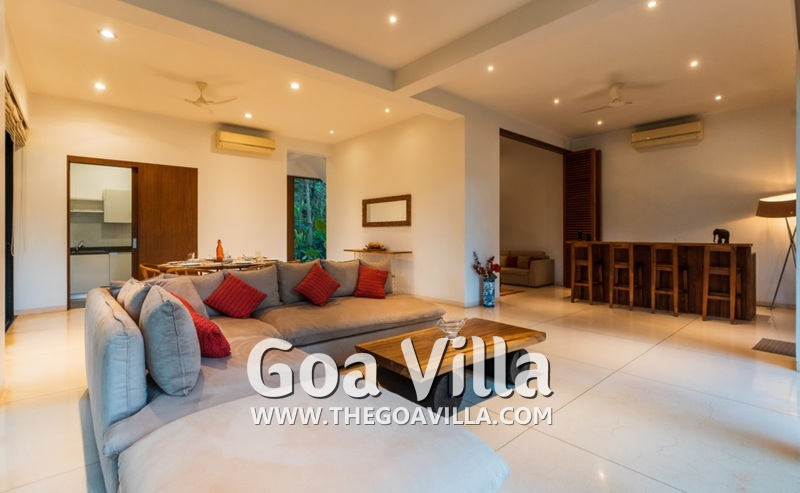 This North Goa holiday villa is in Anjuna. It is close to many attractions like the Splashdown Waterpark, a rock climbing facility, a karting area, Club Cubana, and the Arpora Night Market. You will be able to reach both Anjuna Beach and Baga Beach easily from this villa.
