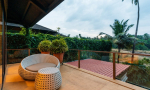 Serene Luxe 3 is an outstanding holiday villa for rent in North Goa with a private pool. This modern 2-story home blends easily with the surrounding countryside and mixes contemporary style with rustic charm. Each corner is fabulously decorated but the villa still feels like home. Landscaped lawns and wide balconies provide beautiful views. Guests love to gather around the pool to entertain and relax. The rooms are large and airy. You will sense the welcoming and relaxing vibe everywhere. Air-conditioning, large-screen televisions, rainwater showers, and a well-equipped kitchen ensures you will have everything you need for a modern holiday here.