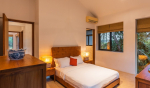 This luxury holiday villa is located in Anjuna. This tropical hideaway is next to the Splashdown Waterpark and a rock climbing facility. The Baga River flows at its front and at the backside you will see a forested hill. This is a very quiet and serene area away from the beach. The villa has a strategic location as it provides easy access to both Anjuna and Baga. You will be able to reach both these beaches in less than 10 minutes.