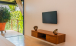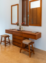 Bedrooms – It is a large home with 5 bedrooms that can comfortably sleep up to 10 guests. The bedrooms are spread over two floors with each floor offering something special. The ground floor bedrooms come with sliding glass doors, so you will be only a few steps from the pool and garden. On the upper floor, the bedrooms open to a large balcony or terrace, offering panoramic views of the green neighborhood and the river. They all have king beds, wardrobes with hangers, televisions, and beautiful lampshades. They are all air-conditioned.