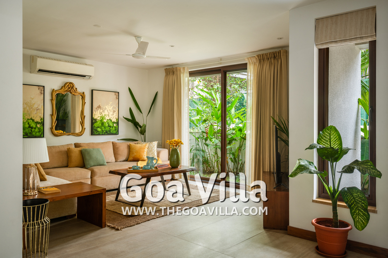 A family holiday can be a great way to introduce the kids to a life-long love of travel. And a holiday within pristine nature presents the perfect opportunity to imbibe in them the importance of nature so that they can become nature lovers. Welcome to Villa Serene Oaks. This fantastic 4-bedroom rental villa is located at Anjuna in North Goa and is surrounded by lush greenery and the best of Goa’s natural splendors. The house occupies a serene spot on the side of a green hill, away from the touristy areas of Anjuna. And yet, Anjuna’s famous beach is only 5 minutes away. It’s not just the location. Villa Serene Oaks is packed with every modern facility and amenity you want in a 5-star luxury villa.