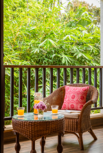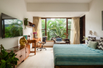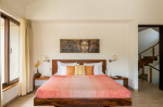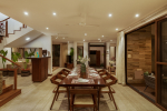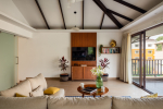 Bedrooms – The villa has 4 air-conditioned bedrooms that can easily sleep 8 guests. The four bedrooms all have king beds with high-quality mattresses and soft pillows, massive televisions, study tables, wardrobes, sofas or armchairs, and bedside tables with reading lights. Large windows provide views of the surrounding greenery. the master suite on the upper floor, has a private balcony overlooking the forest. It has beautiful cane furniture. The master suite also comes with a huge lounging area.