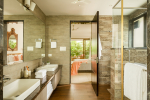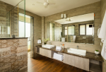 Bathrooms – The ensuite bathrooms have sinks with modern faucets, showers, towels, and toiletries. The one with the master suite has his/her sinks.