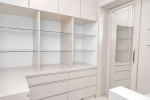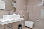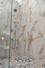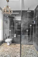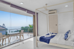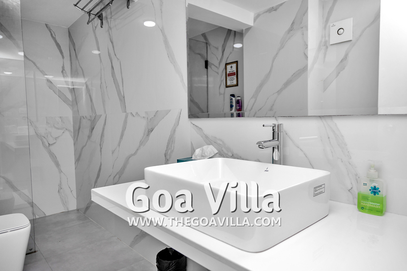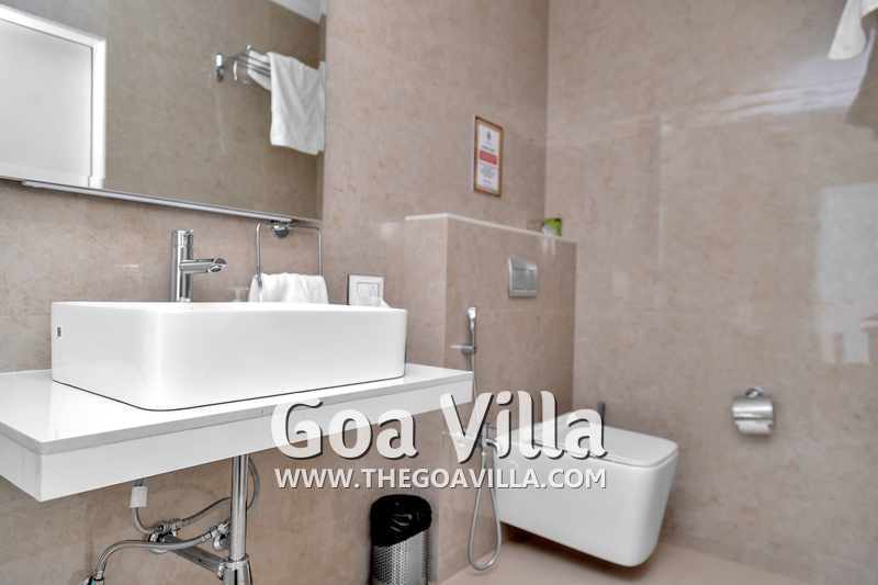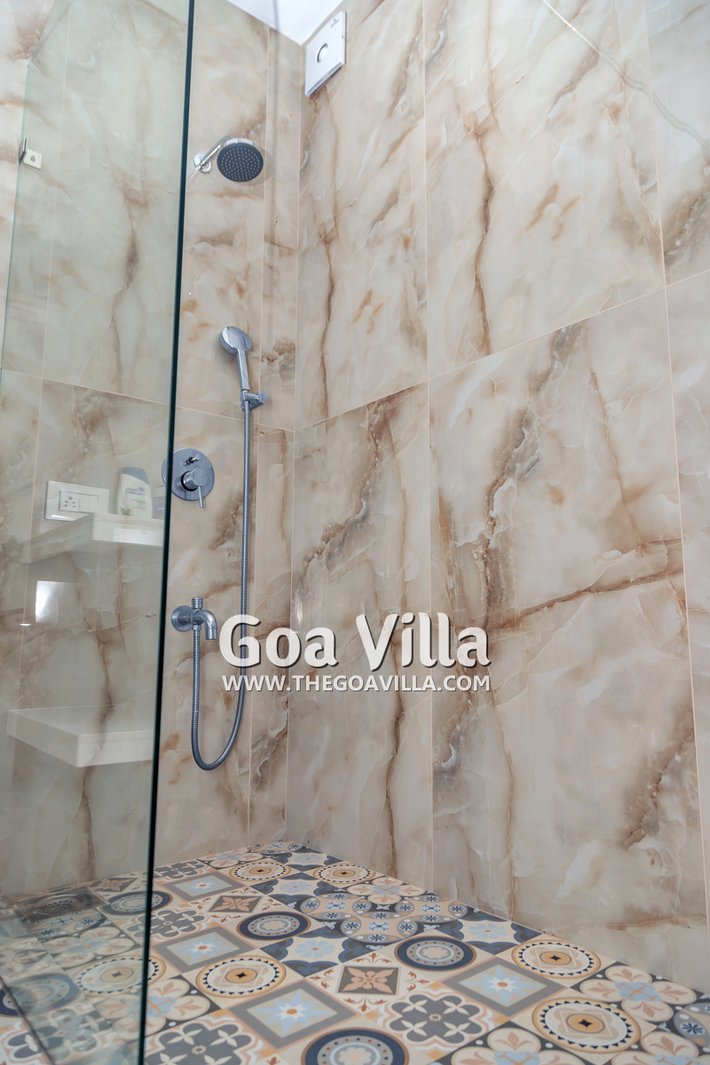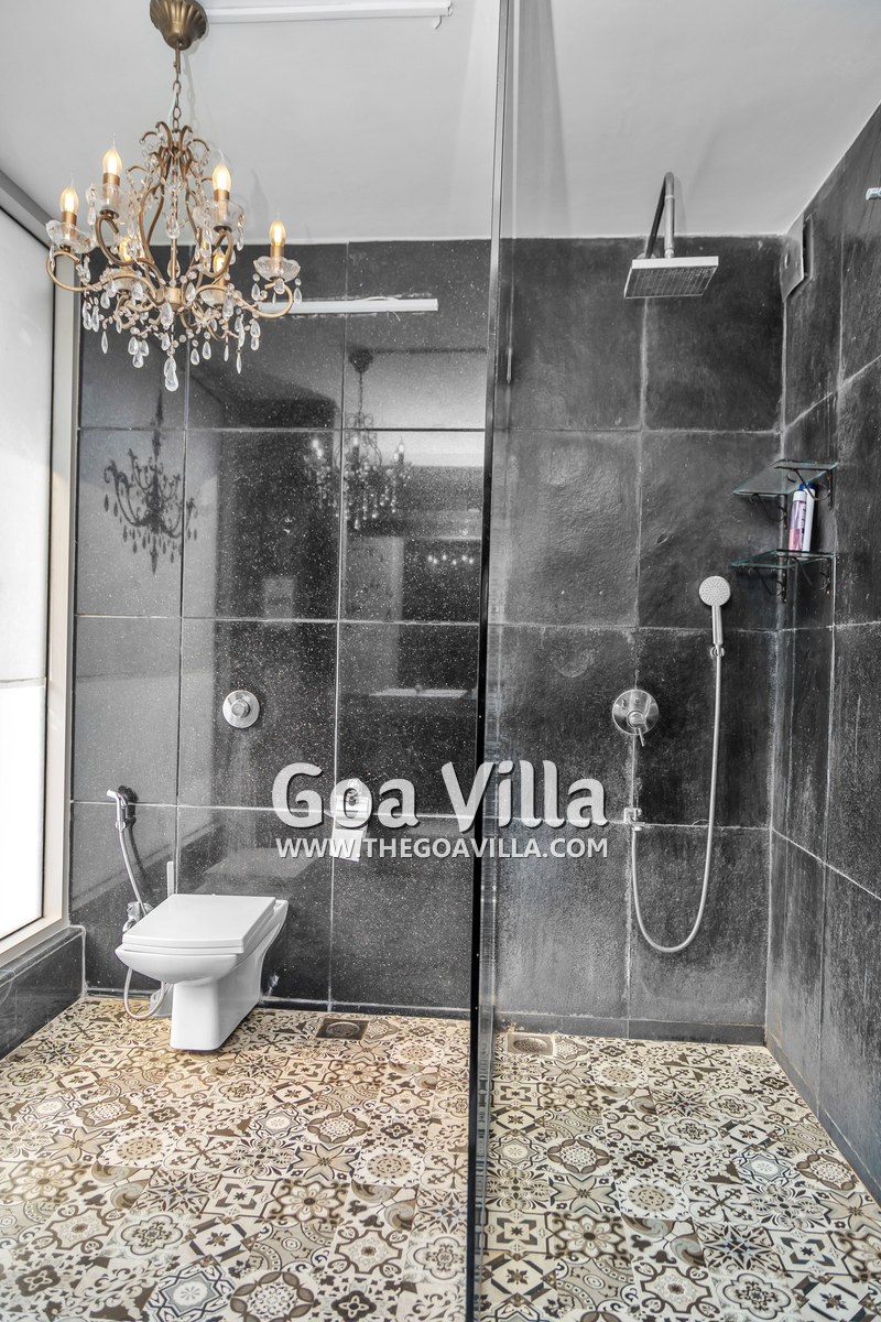 Bedrooms – The house is built over five levels. The villa owner has thoughtfully placed one bedroom on the ground floor for the convenience of aged guests and those with mobility issues. The three other bedrooms are all on separate floors so the guests will have seclusion and privacy, even when traveling in a group. Each floor has one bedroom each and each bedroom opens to a fabulous sea-facing balcony. There are private seating areas on each balcony. The bedrooms all have double beds, wardrobes, and everything else you want in a modern property. The bedrooms also have ceiling-to-floor glass panels leading to the balconies.