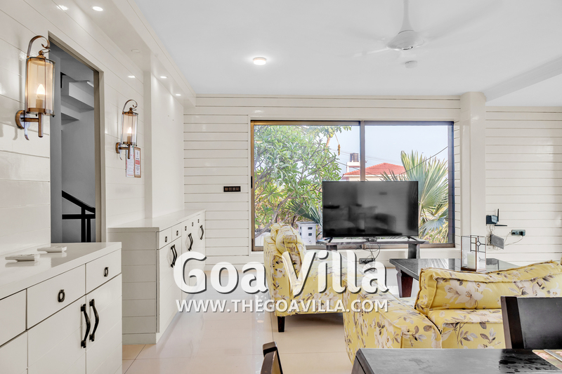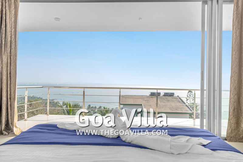 Villa Serene Oceans is very close to Candolim Beach but away from its touristy areas. The house is located at the side of a hill and faces the wide ocean. It is built over five levels with each level having a wide balcony that faces the ocean. The sea views are simply fabulous. It’s a fabulous location, where you will be surrounded by green wooded hills, magnificent sea views, stunning sunsets, and complete peace. Candolim Beach is an easy 10-minute drive from this luxury villa for rent.