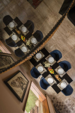 Dining, Kitchen – The dining area features a rustic glass-top table with seating for the entire family. There is a second dining area on the terrace. You can have your breakfast or even the meals, while enjoying fabulous views of the river, garden, and the swimming pool. The kitchen has many appliances, cookware, serve ware, cups, plates, and glasses.