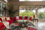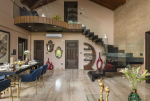 Sensational views await you at Serene Shore. This beautiful North Goa rental villa is in the middle of nowhere. All around, you will find lush greenery and tall mountains. But the main attraction is the Mandovi River and its confluence with the Arabian Sea. You will get gorgeous views of the confluence from this holiday villa for rent. A long sandy beach is just 70 meters away. This 3-bedroom home for 9 guests is also packed with everything you want in a luxury holiday. It features a private swimming pool, large garden, barbecue, a well-equipped kitchen, free Wi-Fi, a wonderful balcony, and indoor/outdoor dining facilities. The interior is decorated with earthy colors, marble work, and artifacts.