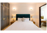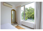 Bedrooms – Serene Sienna 2 has two beautifully decorated bedrooms for four guests. They are both on the upper level of the house, away from the common areas. So, you can go up for a quiet sleep anytime you want. They both have large double beds with high-quality mattresses. Large French windows provide views of the pool, garden, and surrounding greenery. There are wardrobes, life-size makeup mirrors, bedside tables with reading lights, and armchairs.