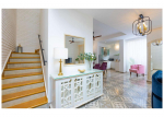 Living Room – The ground floor of Serene Sienna has an open-plan layout. The living area features two large sofas in bright colors, which contrast very nicely with the whitewashed walls. There is a modern coffee table and a satellite television. Potted plants provide a nice transition between the indoor area and the outdoors. A huge glass sliding door opens to the garden and swimming pool.