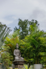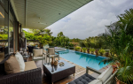 Swimming Pool – Villa Solitude A has a beautiful private swimming pool with a poolside patio and lounge. The pool will be exclusively for your group during your stay. It faces the green surroundings and offers fantastic views. Enjoy a swim here while taking in these views. There is a wooden deck on one side with a huge statue of Buddha at its farthest end. On the other side, a day bed is placed virtually on the water. The deck also has many garden chairs and a sofa for your poolside relaxation.