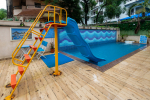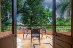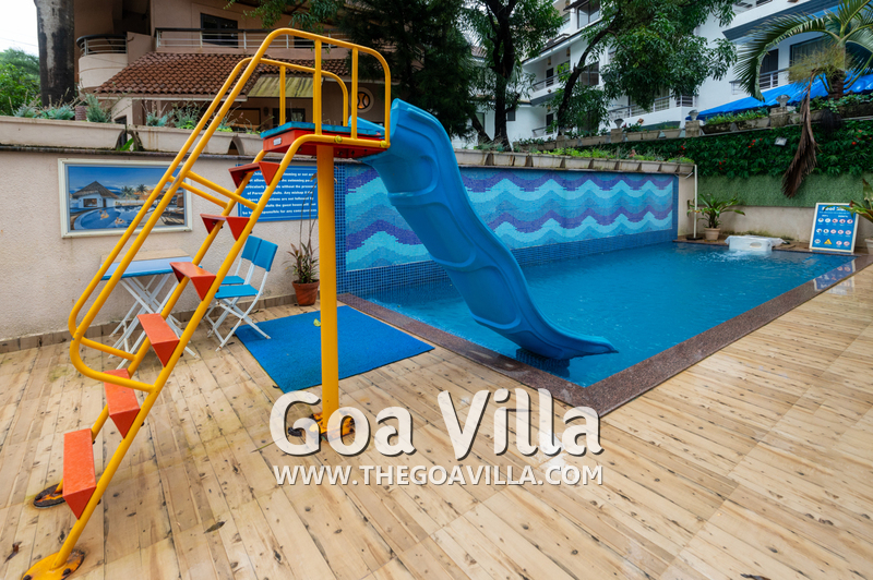 Swimming Pool – The outdoor area of this rental villa is truly spectacular. The ground level has a beautiful garden. There is a swimming pool with a water slide. It’s a lovely spot to chill and have fun. All of you can slide down into the pool and enjoy a fabulous time. On the pool terrace, there is a table for a drink and snacks. Wait! There is more! Go to the terrace and you will find a lovely space for those stunning sunset views.