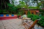 A tropical garden, spread out on an area of 3 acres, which each morning gets visited by various birds — green parrots famous bird Kingfisher and family of squirrels.