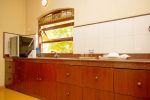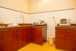 - The kitchen includes: microwave, refrigerator, coffee maker machine, juice squeezer, gas stove with oven, water filter, clothes washing machine and a set of dishware.