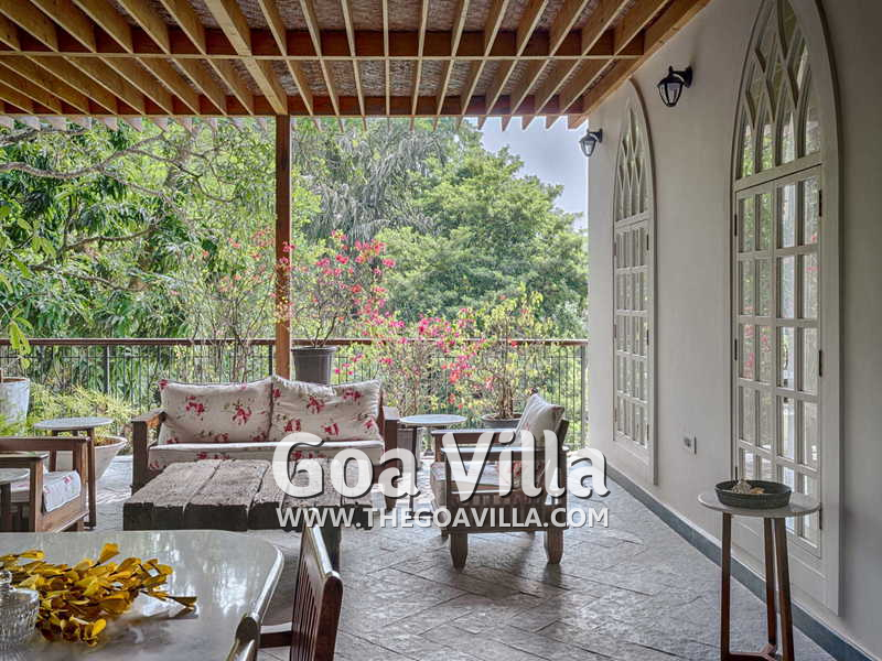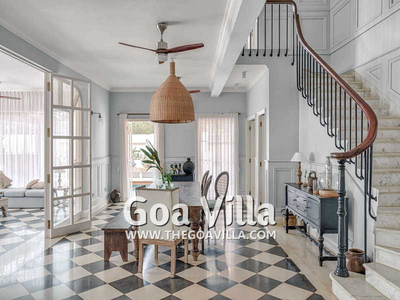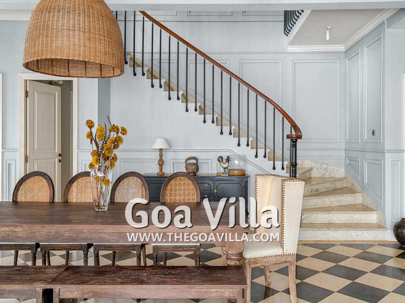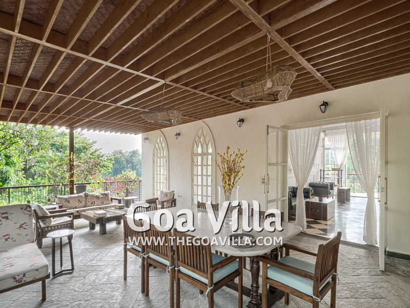 Assagao, where this luxury holiday villa is located, is a very green and serene neighborhood. It has two forested hills that extend all the way to Chapora on one hand and Anjuna on the other side. If you want to eat outside, you can go to the Greek tavern Thalassa. Coco’s Kitchen, Vinayak, and Spice Goa also serves very good food.