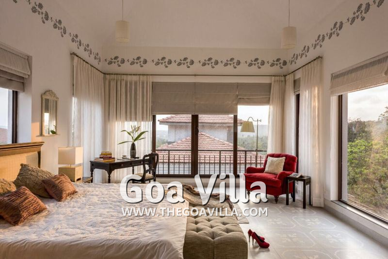 Bedrooms – This is a 2-storied house with 4 bedrooms for 8 guests. All of them have king beds – they are either modern or antique four-poster beds. There are extra pillows for sleeping comfort, wardrobes, dressing areas, armchairs, and study tables. Two walls in the master suite are almost entirely made of glass, so the views are always gorgeous. The other bedrooms too have wide windows and doors opening to balconies.