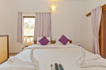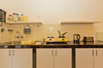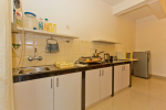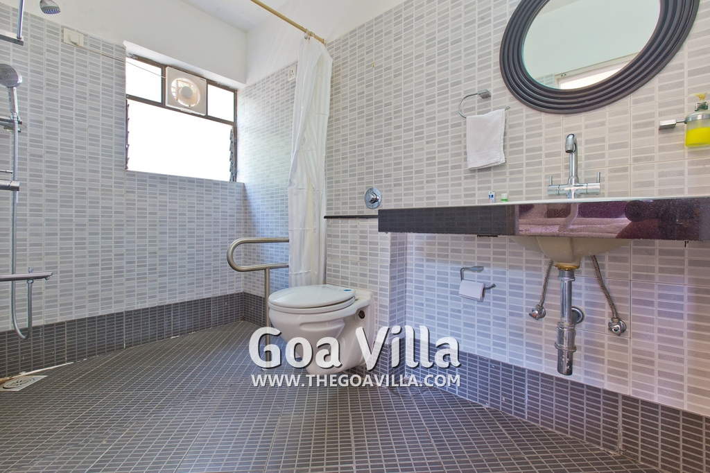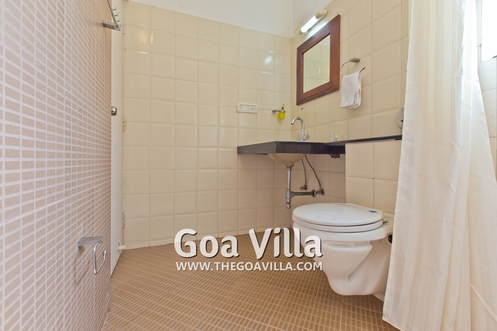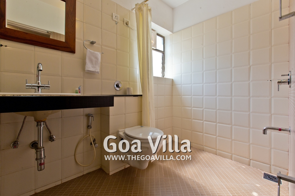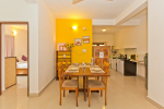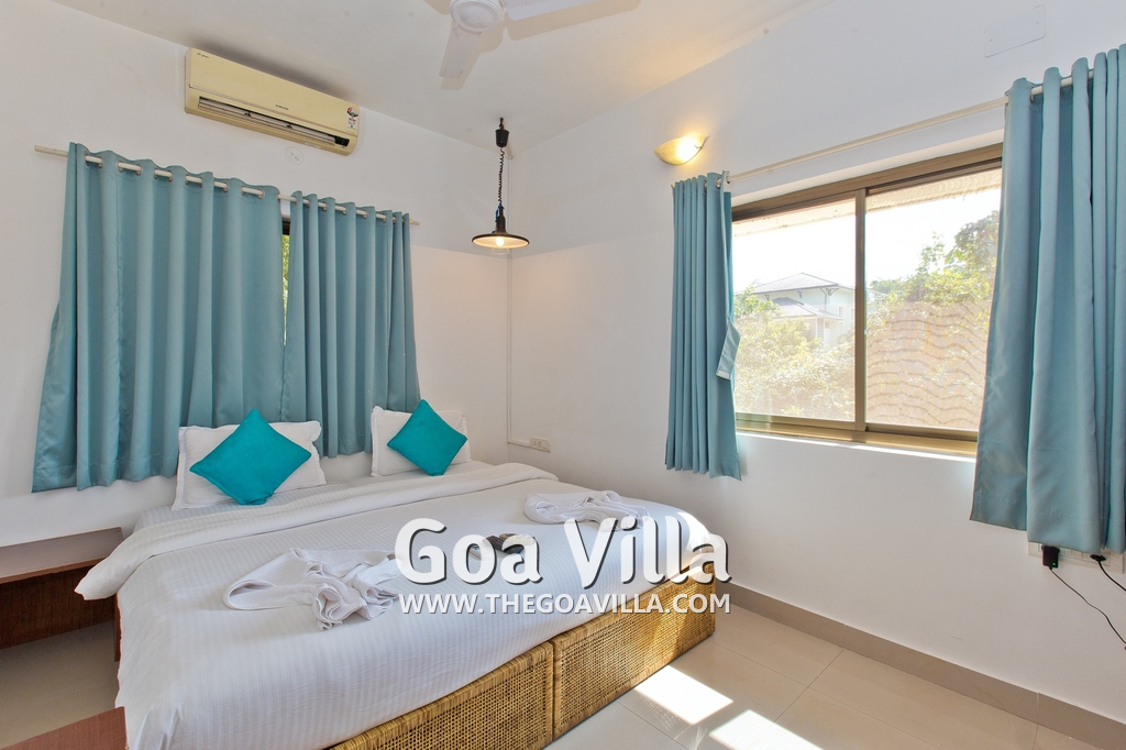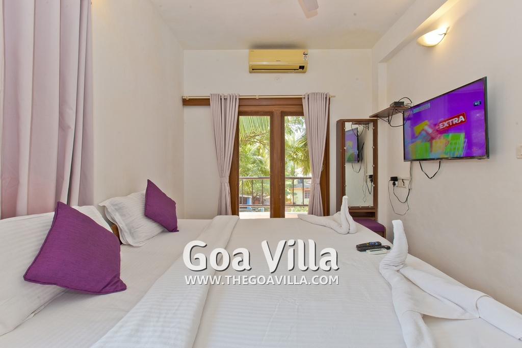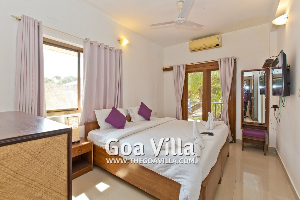 Dining, Kitchen – The is a small wooden dining table sits all the 4 guests. The apartment has a well-equipped kitchen you can use during your stay in Goa. It has a stove, electric kettle, microwave, toaster, refrigerator, and water purifier. If you prefer, you can also ask for chef service.