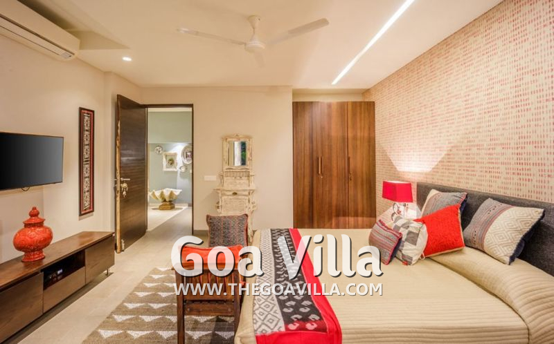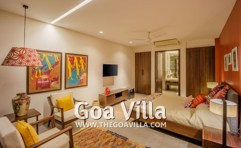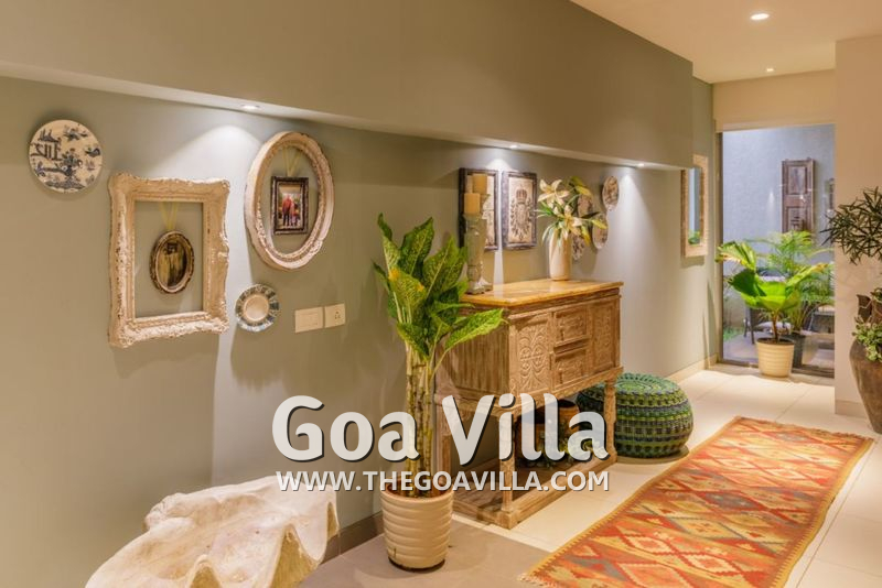 This North Goa luxury villa is located between Arpora and Parra. This is a hilly area with lush forests and many tall trees. You will find many villages all around. The Parra Coconut Tree Road that leads to a chapel is very scenic. Anjuna, Vagator, and Baga are the closest beaches.