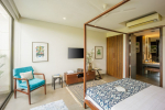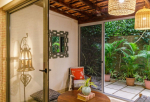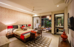 Bedrooms – The villa has 4 bedrooms with 3 of them on the ground floor. The fourth bedroom is on the first floor. They are generously spaced out and immensely private, which makes them perfect for a good night’s sleep away from the common areas of the house. Each bedroom offers a distinct style, but they are all equally luxurious. All the ground floor bedrooms have wonderful covered balconies with seating areas that provide private entrances and also open to the garden. They all have king beds and large closet spaces. There is a smart TV in each of the bedrooms.