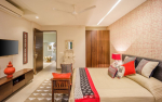Swimming Pool – Swim in the large private pool with your friends or family. Have fun splashing around. You will find many seating area on the poolside terrace so you can relax and recharge. The deck also has an alfresco dining table. And at the center of the pool, you will find a daybed. Flowering plants surround the life-size Buddha statue at one corner. The private garden of this property is connected to the common garden of the community.