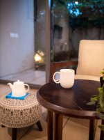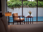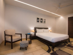 Bedrooms – Experience luxury in the middle of an Indian forest! The three bedrooms, all on the same level, have king beds. Bedroom #1 has a four-poster antique bed and opens to the pool terrace. Bedroom #2 has a modern double bed. It opens to the old banyan tree, which is a key attraction of this property. Bedroom #3 also has a modern double bed. It opens to the garden. Extra cots can be added to accommodate two more guests. mThe muted style of the rooms reflects the relaxed and composed atmosphere of the villa. All of them have private seating areas and smart televisions.