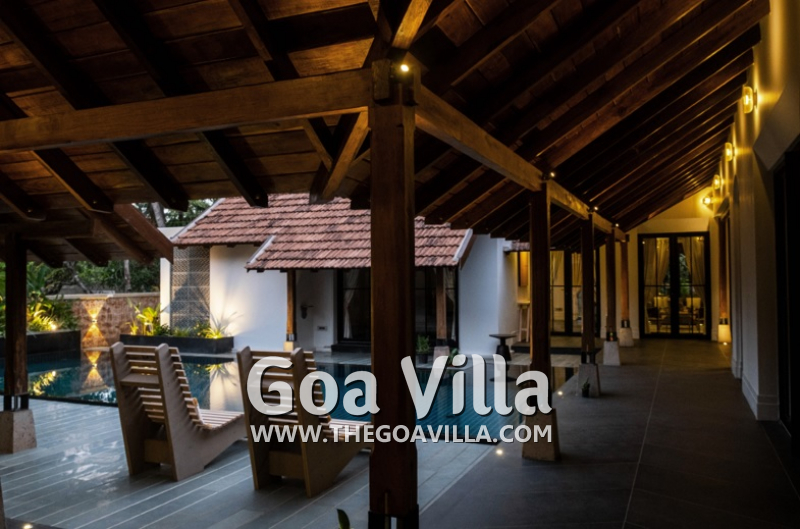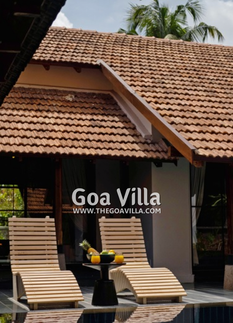 Swimming Pool – Guests staying at this villa for rent will have exclusive access to its private swimming pool. The pool is surrounded by a covered balcony, which is the typical traditional design of Goa homes. All the rooms open to this balcony, so you are always close to the pool. Steps lead down gently into the inviting pool. it even has a shallow end where the kids can splash around safely while you wade into the deeper areas. Relax on a poolside lounger after your swim.