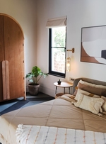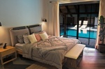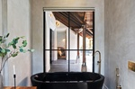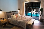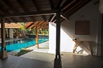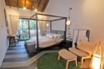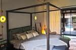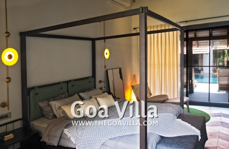 Bedrooms – The entire villa is built on a single level, which is great for young children and seniors with mobility issues. The house has four bedrooms, all with large double beds. Bedroom #1 is huge. It has a traditional wooden-beamed high ceiling, which makes it feel even bigger. Bedroom #2 has a four-poster king bed. One entire wall comprises of a floor-to-ceiling glass that opens to a green yard. Bedrooms #3 and #4 both have queen beds and face the inner quarter of the house and the pool.