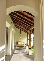 Go back in time to the old colonial Portuguese heritage of Goa. Live in a house that fuses the best of both the Portuguese and local Konkani traditions. It’s like a journey back in time, a journey to the soul of the authentic Goa. Tamarind Boutique is surrounded by lush nature, a serene landscape that is perfect for a relaxing, laid-back vacation. And yet, this holiday villa for rent is located in one of the most popular tourist areas of Goa – the popular Anjuna beach of North Goa is only a kilometer away. Tamarind Boutique is a luxury villa with 4 bedrooms that can easily sleep up to 8 guests.
