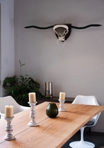 Kitchen, Dining – The formal dining area has an 8-seater farm-style table facing a large window. The kitchen is located just below the attic. It has many modern appliances for your convenience. There is a breakfast table here as well with high chairs.