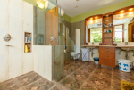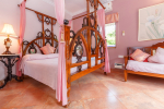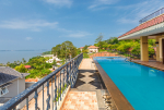 - The master bedroom, located on the upper level, leads out to a wide terrace, overlooking the pool and ocean.